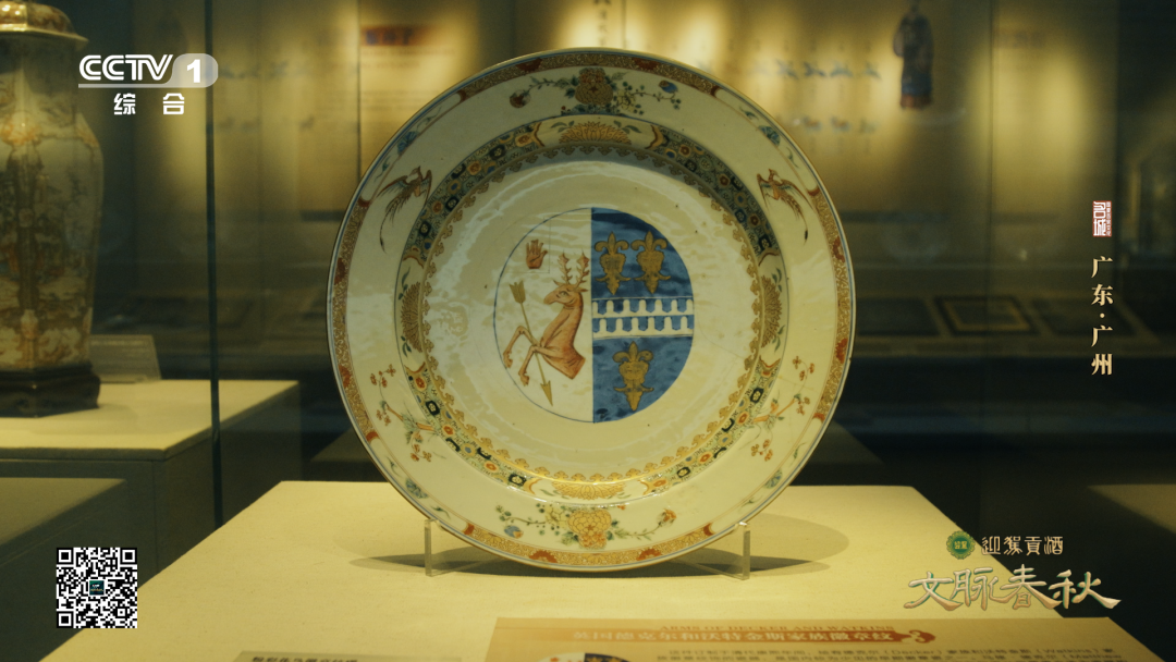 广州十三行博物馆,藏品琳琅满目。其中一件,是一对欧洲夫妇为婚礼专门定制的瓷器,中间的徽章,融合了男方与女方两个家族的徽章纹饰,足见当年中国瓷器受欢迎的程度和广州对外贸易的图景。