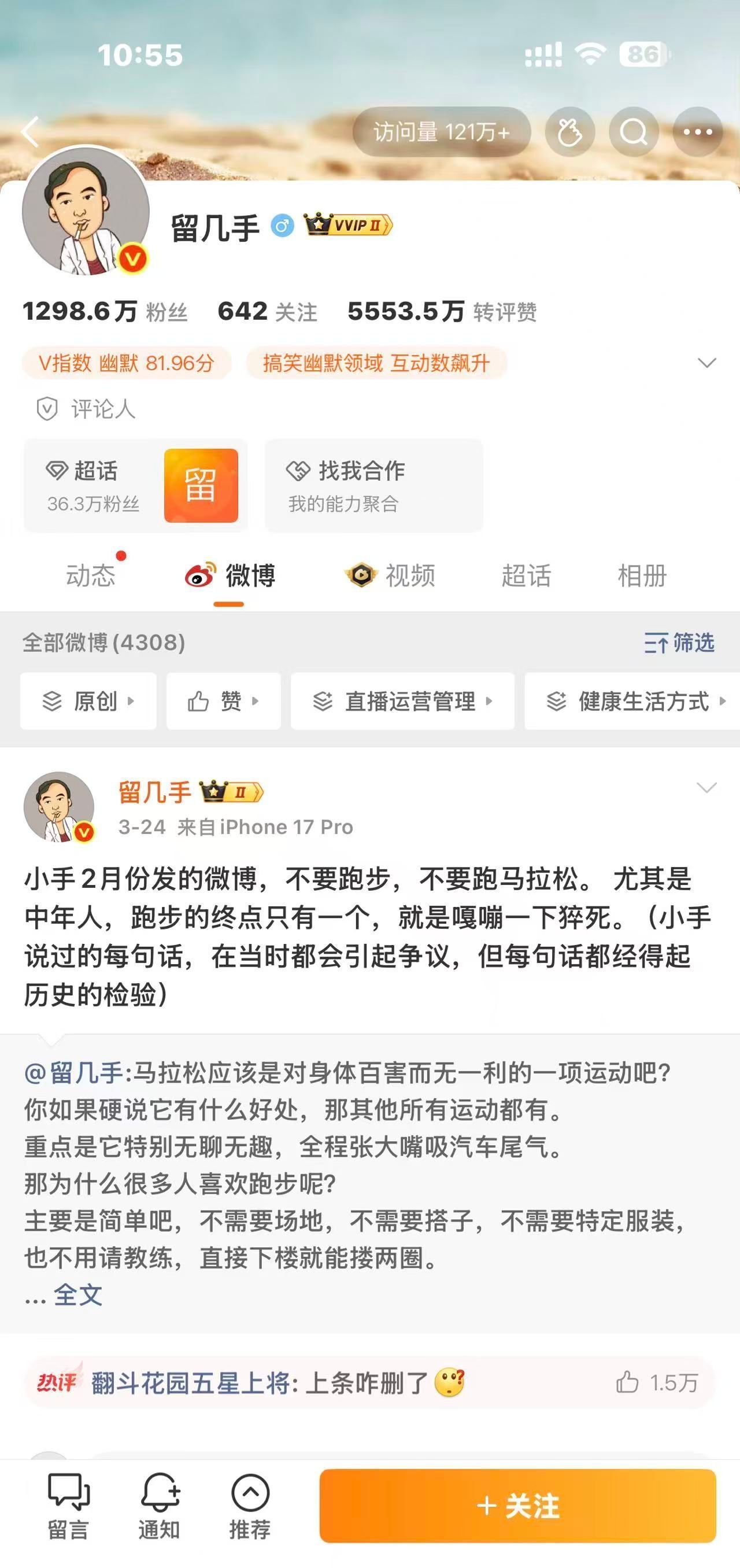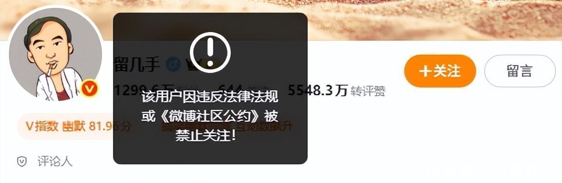 数据显示,留几手被封禁后,其微博最后一条有效动态定格于3月24日22:17,